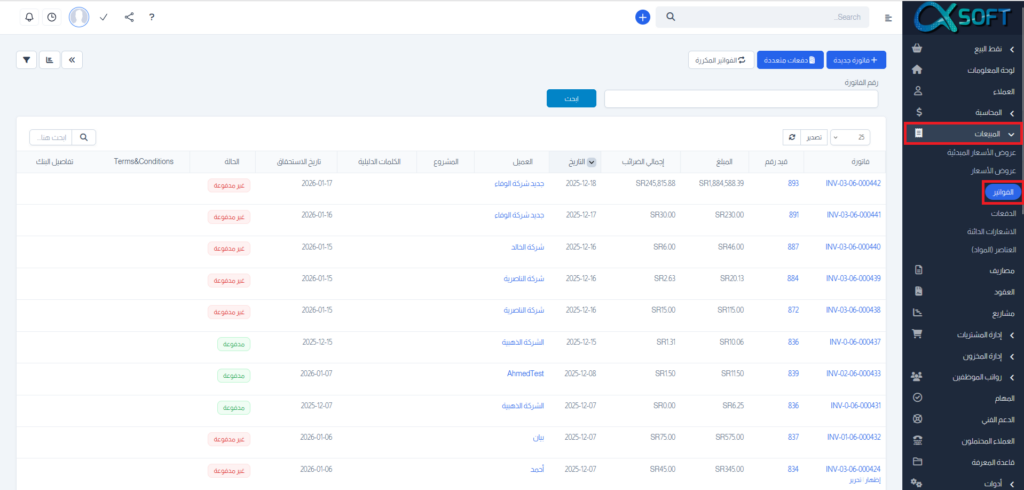 قم بالذهاب إلى المبيعات في يمين شاشة البرنامج ثم اختر الفواتير، واحصل على فواتيرك.