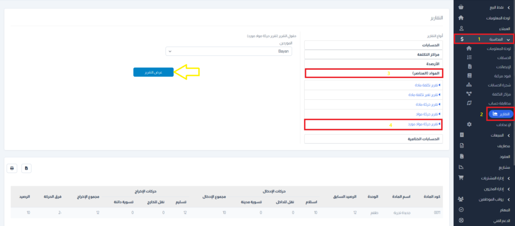 وهو تقرير يمكنك من الاطلاع على حركة مواد مورد محدد.